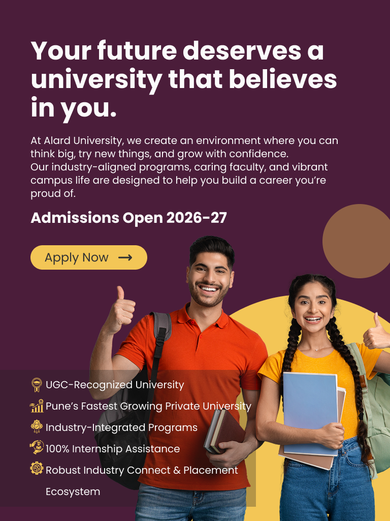 “Within the halls of ALARD lies the canvas where your extraordinary story begins, destined to paint the world with brilliance and purpose.” Imagine a world where knowledge knows no boundaries, where learning transcends the confines of traditional classrooms, and where your passion is nurtured to bloom into greatness. This is the world I strive to create at ALARD University Pune, one of the Best Universities in Pune, where the right to education becomes a cherished birthright and the right to employment an empowering realization. In the vibrant corridors of ALARD, we bridge the gap between theory and practice, cultivating skills that transcend academia and flourish in the professional world. As you embark on this extraordinary journey with us, know that we are not merely imparting knowledge but igniting the flames of Curiosity within you.