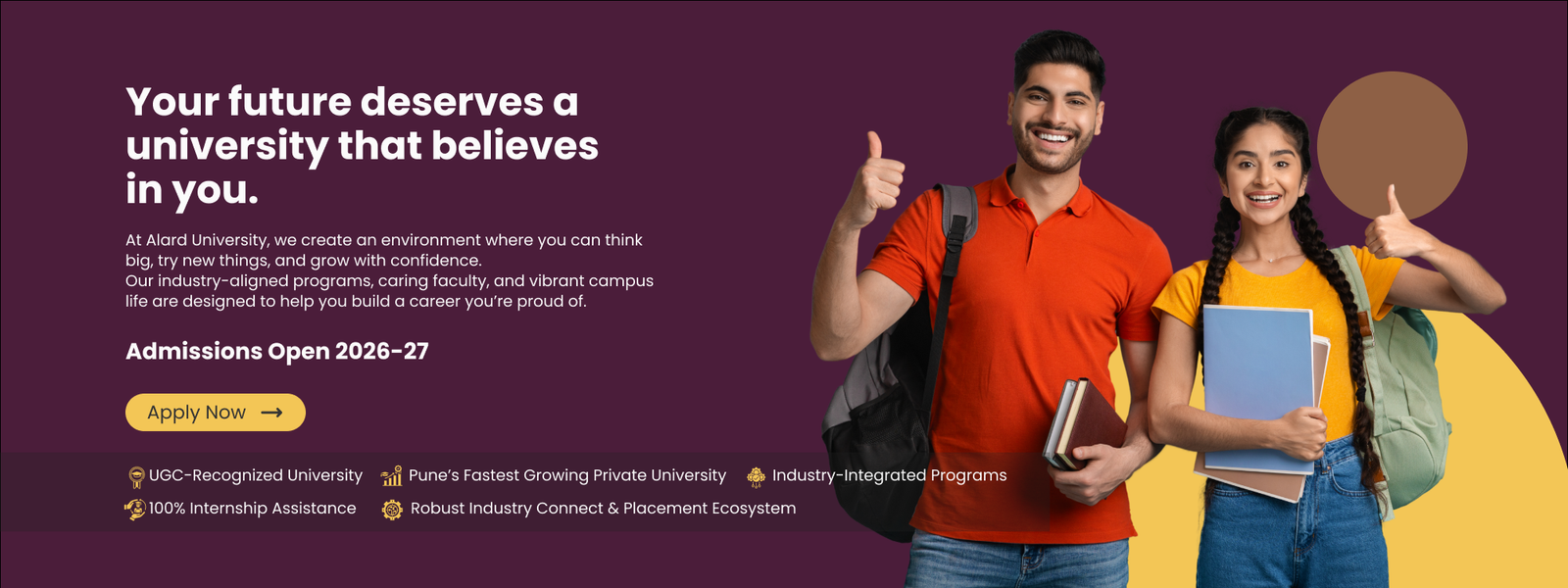At Alard University, every student’s career journey begins from day one. Backed by Alard Charitable Trust’s strong and successful placement ecosystem, our students benefit from powerful industry connections, 100% internship assistance, and a dedicated Centralized Placement Centre that drives training and growth—making strong career development a natural outcome.