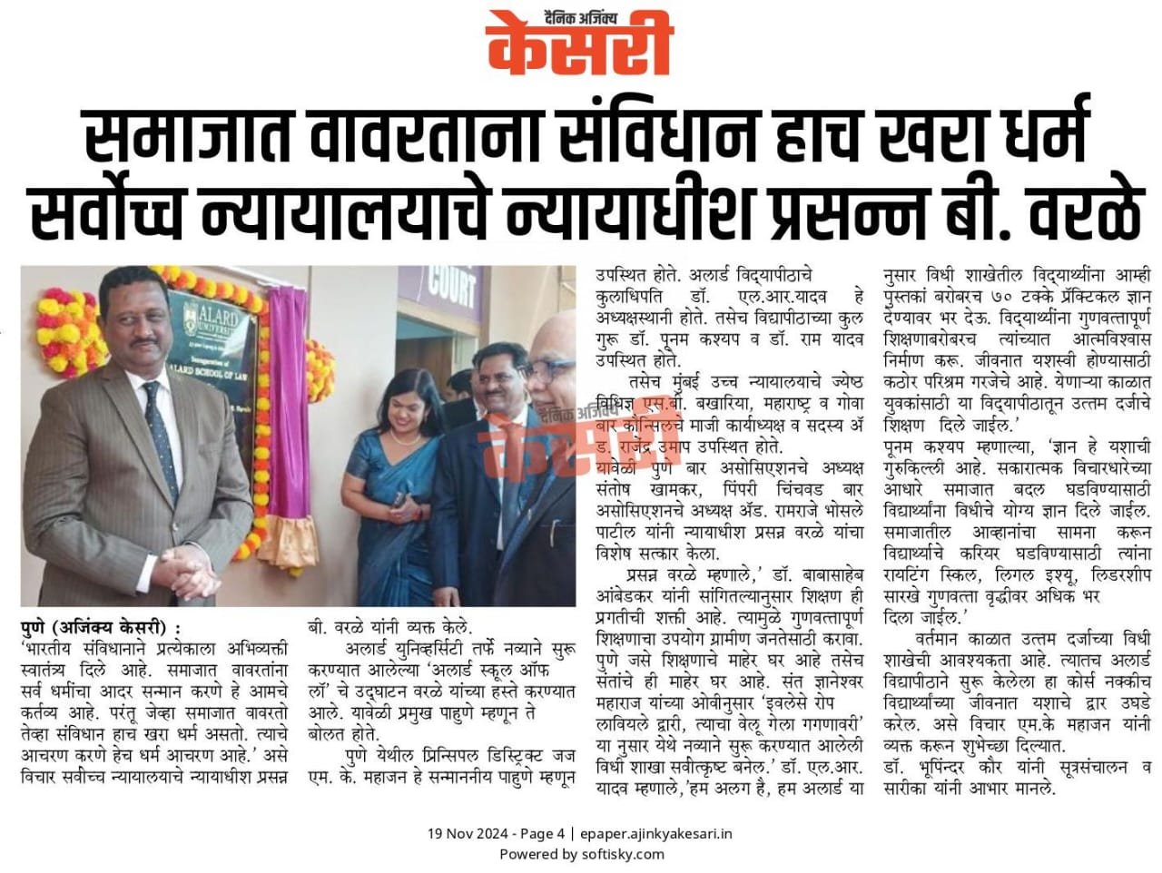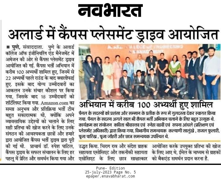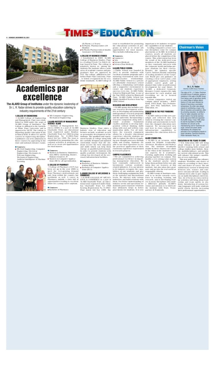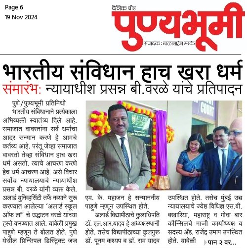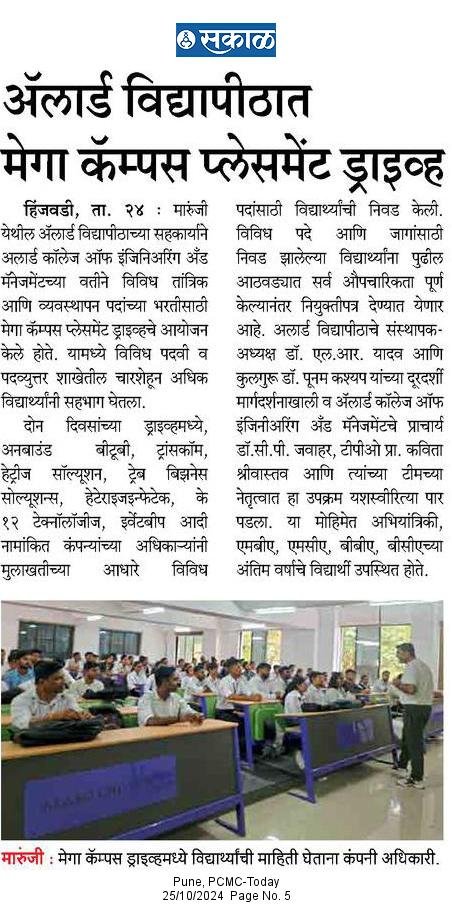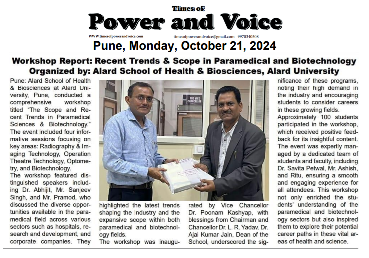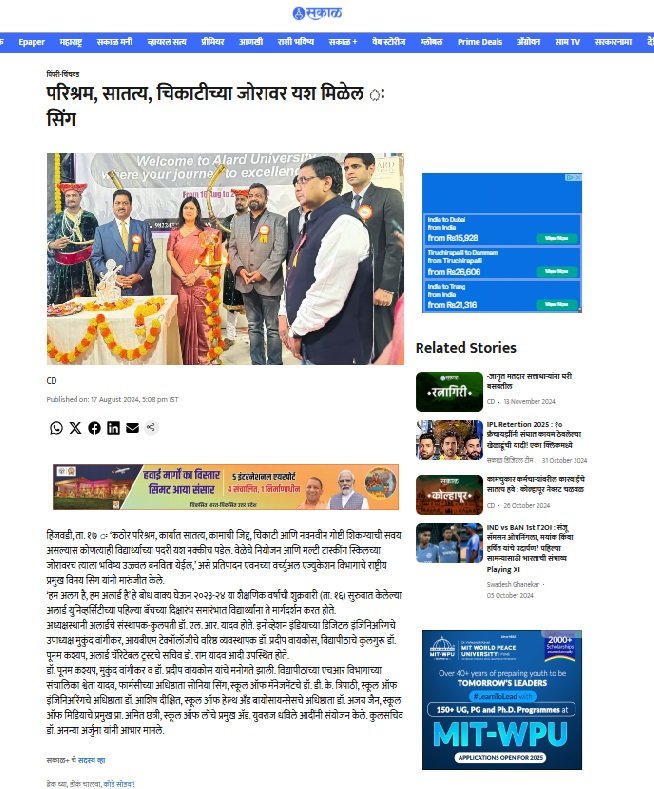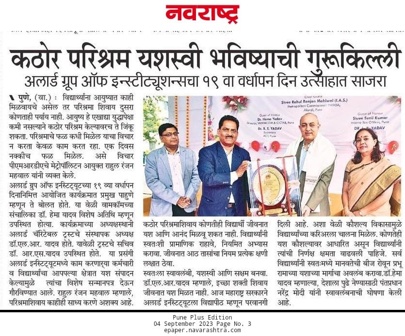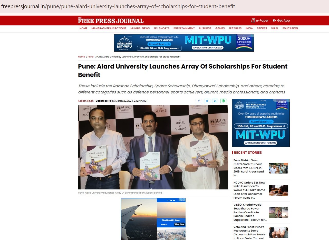 Media coverage of ALARD University Pune showcases and highlights the university’s growth, innovative educational programs, and diverse activities and initiatives undertaken for education and student development. The university’s achievements and it’s impact on the community are frequently featured in various news reports and publications.